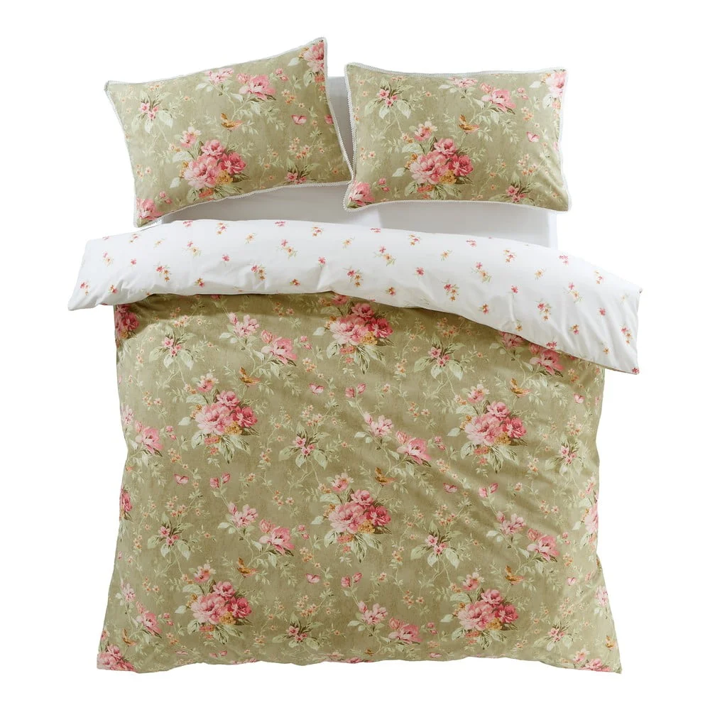 Bílo-zelené povlečení Penelope Floral 200x200 cm Povlečení