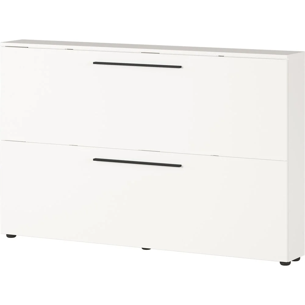 Světlý závěsný botník Utah od značky Germania nabízí praktické řešení pro vaši předsíň nebo šatnu. Jeho výklopný design umožňuje snadné a pohodlné ukládání obuvi, šetřící místo.