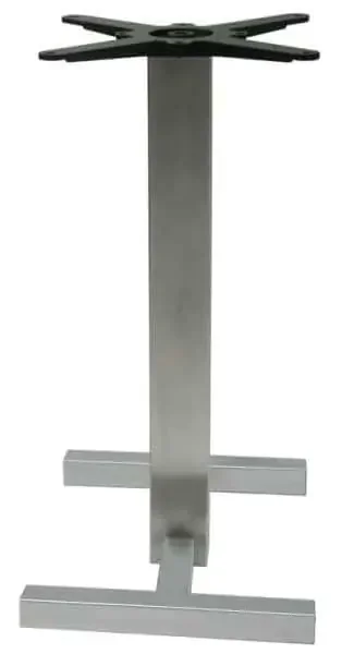 Jídelní centrální podnož pro stoly je vyrobená jako pevná základna s hranatými trubkami. Základní povrch podnože je v černé barvě dle RAL 9005, která se hodí do každého interiéru. Podnož je navržena pro restaurace, jídelny, kavárny a bary s vyšší zátěží. Pro volbu materiálu nabízíme INOX MAT – trubka i základna z nerezu s matnou úpravou; INOX LESK – nerezová trubka i základna v lesku. Všechny podnože jsou dodávány s připevovacím křížem pro stolové desky a s vymezovacími patkami pro přesné usazení.