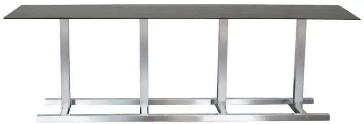 Provedení: Stolová centrální podnož z hranatých trubek v černé úpravě RAL 9005. Podnož je určena pro vysoké zatížení v interiéru a hodí se pro provozy jako restaurace, jídelny, kavárny a bary. K dispozici jsou varianty materiálu: INOX MAT – nerezová trubka i základna s matovým vzhledem; INOX LESK – nerezová trubka i základna s lesklým povrchem. Všechny podnože mají upevňovací kříž pro stolové desky a jsou dodávány s vymezovacími patkami. Cena platí výhradně za podnož; deska není součástí dodávky!