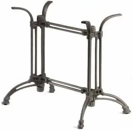 Stolová podnož z litiny je konstruována se čtyřramenným podstavcem ve tvaru šicího stroje, což zvyšuje stabilitu stolů. Litinová konstrukce zajišťuje dlouhou životnost a vysokou pevnost i u desek větších rozměrů. Podstavec má rozměry 80 × 55 cm a povrch je v černé barvě podle RAL 9005. Pro model BL003 se doporučuje max. deska 80 × 140 cm. K dispozici jsou varianty: barová verze, čtyřramenná jídelní, trojramenná barová a čtyřramenná dvojpodnož pro obdélníkové desky. Podnož je vhodná pro prostory s vysokou zátěží, jako jsou restaurace, jídelny, kavárny, bary či čekárny. Možnost lakování dle vzorníku RAL umožňuje sladit vzhled s vaším interiérem a zvyšuje odolnost proti opotřebení.