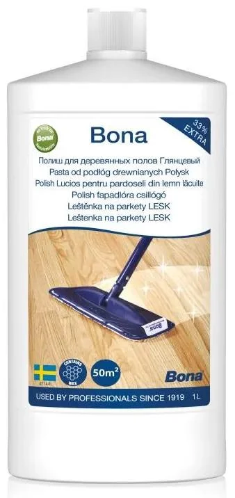 Bona Leštěnka na parkety je ideální volbou pro dosažení dokonale lesklého a pečlivě ošetřeného povrchu vašich parket. Tento produkt v praktickém balení o objemu 1 litru vám umožní snadno obnovit přirozený lesk a chránit dřevo před poškozením. Vysoce kvalitní složení zajišťuje dlouhotrvající efekt a snadnou aplikaci, díky čemuž bude vaše podlaha vypadat jako nová. Pokud hledáte spolehlivou péči o parkety, Bona Leštěnka je skvělou volbou pro profesionální i domácí použití.
