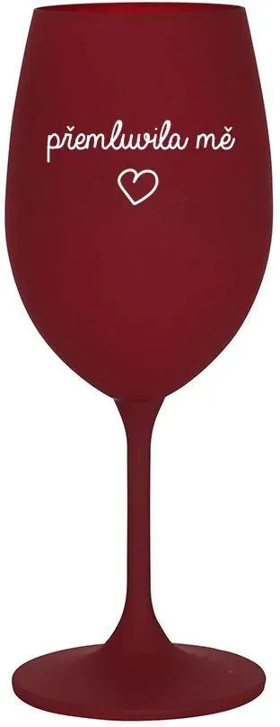Elegantní vína sklenice v bordo odstínu o objemu 350 ml, ozvláštněná originálním motivem Přemluvila mě, je ideálním doplňkem pro každého milovníka vína. Tento stylový kousek skvěle poslouží nejen při slavnostních příležitostech, ale i při pohodových večerech doma, kdy si chcete zpříjemnit chvíle sklenkou svého oblíbeného vína.
