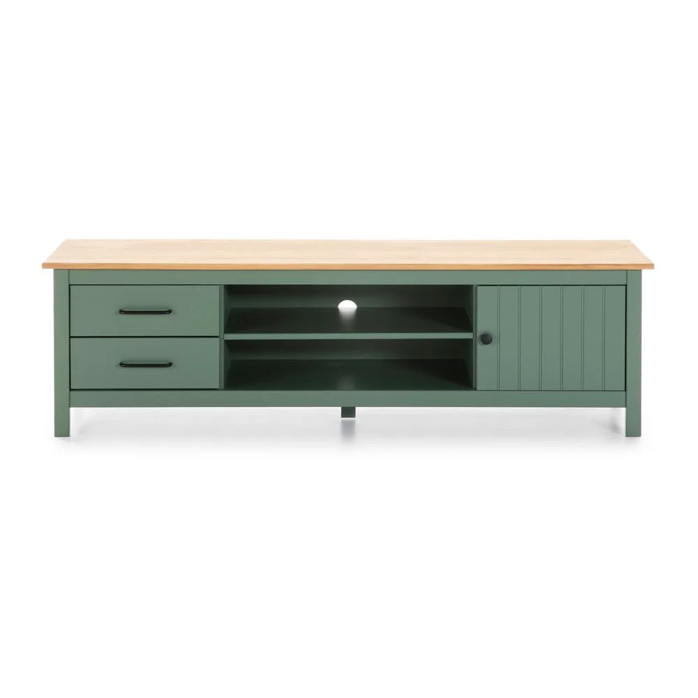 Vylepšete svůj obývací pokoj stylovým TV stolkem z borovicového dřeva v elegantní zeleno-přírodní barvě. Díky své rozměrové velikosti 158x47 cm nabízí dostatek prostoru pro vaše elektronika a dekorace.