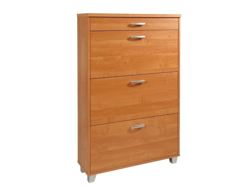 Model AMBALA 2 v provedení olše kombinuje odolnou desku LTD 16 mm s praktickým uspořádáním pro obuv. Rozměry jsou 81 cm na šířku, 128 cm na výšku a 29 cm na hloubku. V horní části najdete horní zásuvku a tři výklopná dvířka s dostatkem prostoru pro boty.