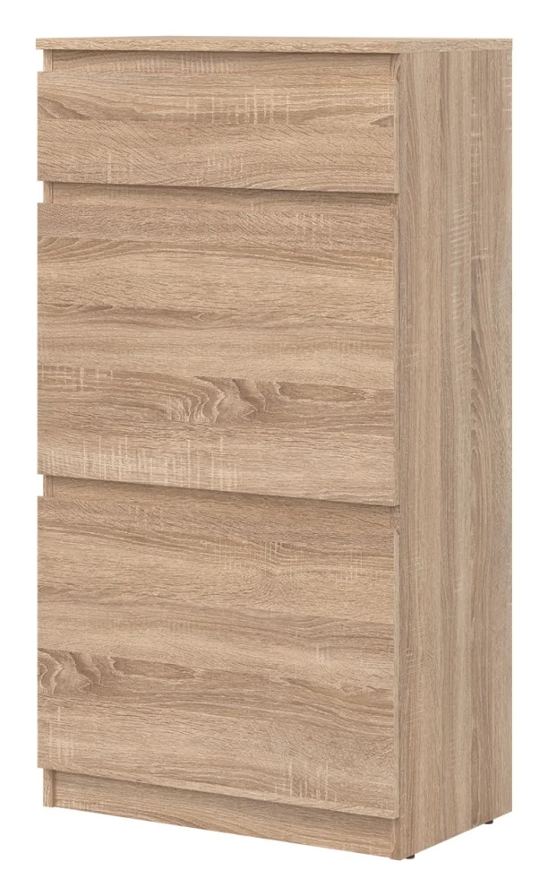Výklopný botník se zabudovanou zásuvkou patří do sektorové řady a nabízí praktické řešení pro pořádek v botách. Je vyroben z lamina v dekoru dub sonoma, který dodává současný a neutrální vzhled.