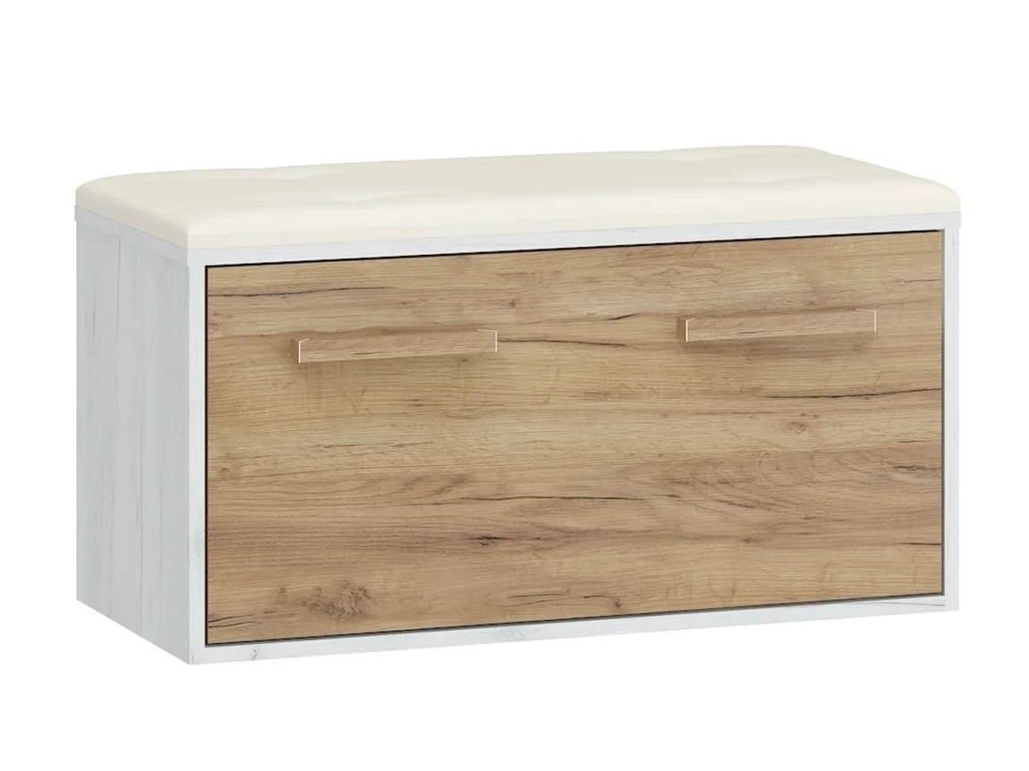 Botník Dorinda přináší elegantní kombinaci provedení craft bílé a craft zlaté s odolným čalouněním z hnědé ekokůže. Rozměry 84 cm na šířku, 45 cm na výšku a 41 cm do hloubky poskytují dostatek místa pro běžnou botníkovou skladbu.