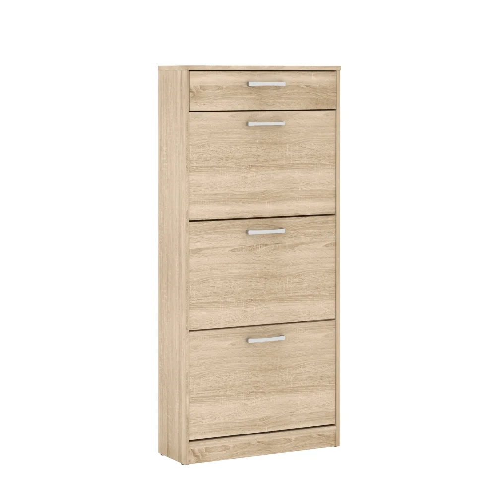 Praktický výklopný botník se zásuvkou kombinuje funkčnost s čistým stylem. Jeho rozměry 58,2 x 127,7 x 20,4 cm zajišťují dostatek úložného prostoru, aniž by zabíral příliš místa. Konstrukce je provedena z lamina s plastovými úchyty a v barevném provedení dub sonoma, které se hodí do většiny interiérů. Botník se dodává v demontovaném stavu, což usnadní dopravu a montáž. Díky praktické zásuvce a výklopnému horním dílu nabízí efektivní řešení pro organizaci obuvi i drobných doplňků.