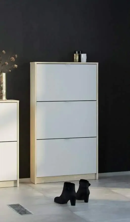 Ušetřete prostor v předsíni díky botníku Flap s výklopnými dvířky, který lze umístit na podlahu nebo snadno zavěsit na stěnu podle vašich potřeb. Je vyroben z odolného lamina, které je snadné na údržbu a dlouho vydrží. Dodáváme v demontovaném stavu s návodem k montáži a veškerým spojovacím materiálem pro rychlou instalaci. Cena je uvedena za 1 kus botníku Flap se 3 výklopnými přihrádkami a nejsou součástí balení další dekorace ani doplňky zobrazené na fotografiích. Hmotnost 25 kg, výška 123,5 cm, šířka 70 cm, hloubka 24 cm. Záruka 2 roky.
