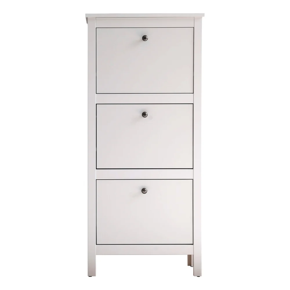 Praktický botník z řady sektorových komponent disponuje výklopy pro snadný přístup k obuvi. V provedení bílé barvy působí svěže a čistě. Materiálové složení zahrnuje horní desku a boční stěny z laminované dřevotřísky s ABS hranami a dvířka z MDF.