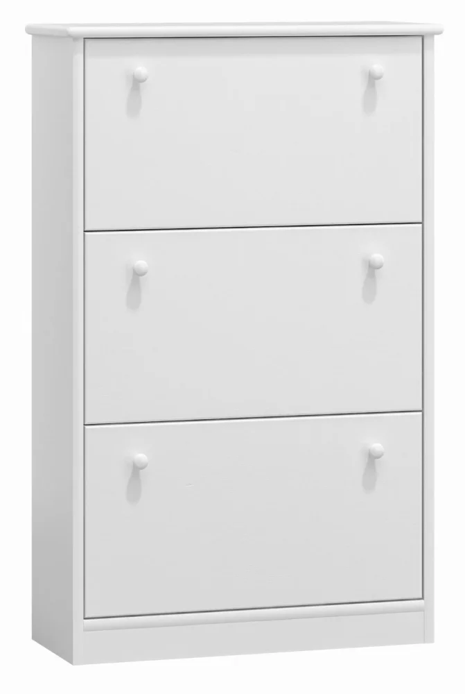 Botník KARUN 3 z masivní borovice s bílým mořením kombinuje přirozený charakter dřeva se svěžím designem. Disponuje třemi výklopy, které nabídnou dostatek místa na obuv i drobnosti. Rozměry 115 × 72 × 29 cm se hodí do většiny vstupních prostor a dodání probíhá v demontovaném stavu usnadňující přepravu a montáž.