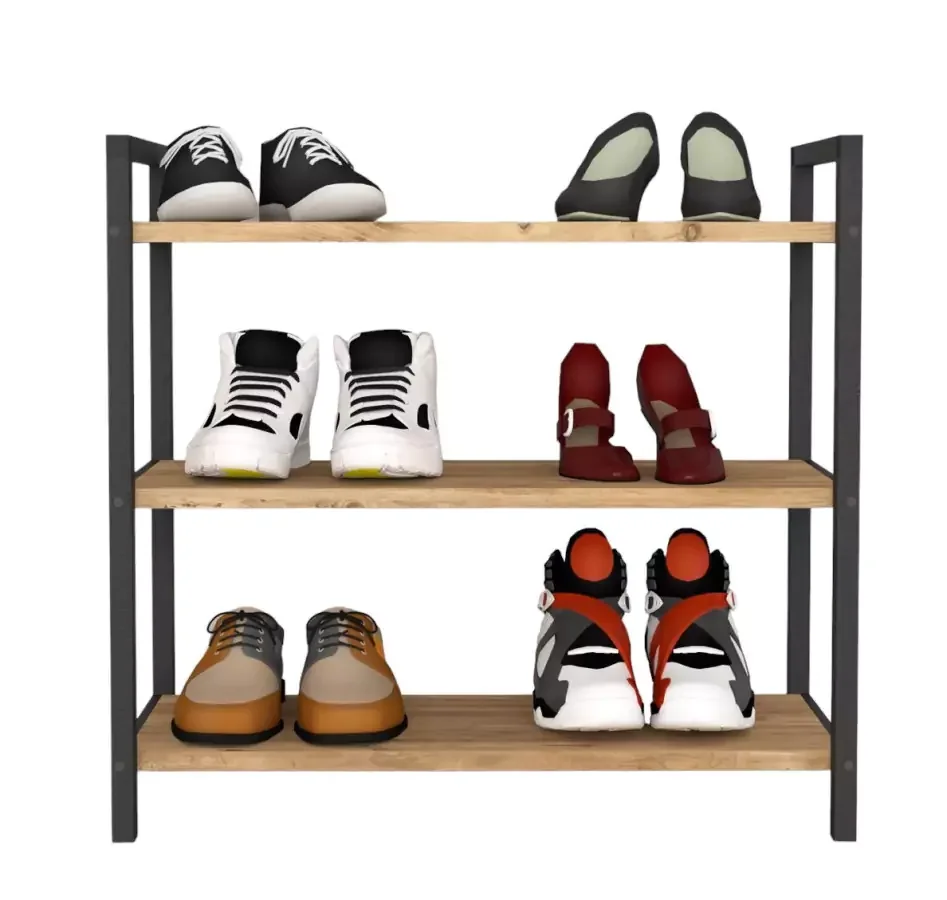 Botník PAULO s třemi policemi kombinuje kovový rám v matné černé a police z LTD desky v dekoru borovice. Tato kombinace dodává moderní a zároveň teplý vzhled, který se hodí do předsíně i chodby. Dodáváme ho v demontovaném stavu, což ulehčuje dopravu a případné skladování. Díky pevné konstrukci pojme několik párů obuvi a dodá interiéru styl.