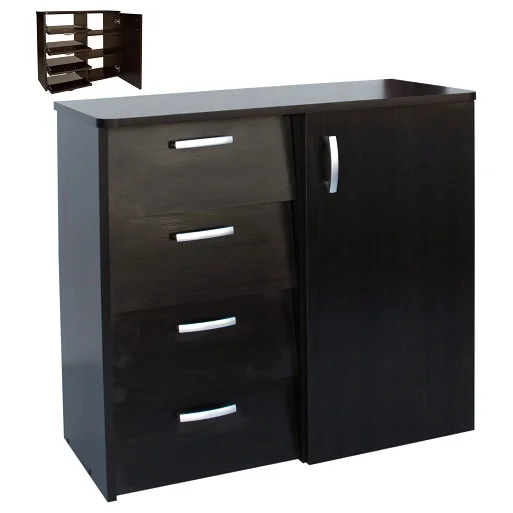 Má výklopná dvířka, čtyři přihrádky a boční skříňku se dvěma policemi, čímž vzniká bohatý praktický úložný prostor. K výběru je několik barevných kombinací lamina o tloušťce 18 mm a různých úchytek, které lze sladit s vaším interiérem. Barevné provedení lamina se může lišit podle nastavení vašeho zařízení a zobrazení; to není důvod k reklamaci. Dodává se v demontovaném stavu; montáž je díky přiloženému návodu jednoduchá. Díky svému provedení a rozměrům se hodí do různých prostor a poskytuje pohodlné uskladnění obuvi a drobných doplňků, což oceníte při každodenním používání.