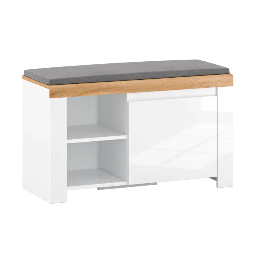 Vyroben je z laminované DTD s ABS hranami o tloušťce 1,6–2,2 cm, což zajišťuje odolnost a snadnou údržbu. V barevném provedení bílá s dubem Wotan působí svěže a nadčasově. Rozměry (Š x H x V): 92,6 × 37,3 × 56,5 cm. Nosnost police: 3 kg; nosnost botníku: 70 kg. Dodáváno v demontu, k montáži je dodán návod; snadná montáž zvládne každý, kdo si nábytek sestaví s trochou trpělivosti. Tento kousek je ideální volbou pro organizovanou, čistou a stylovou předsíň, kterou oceníte každý den.