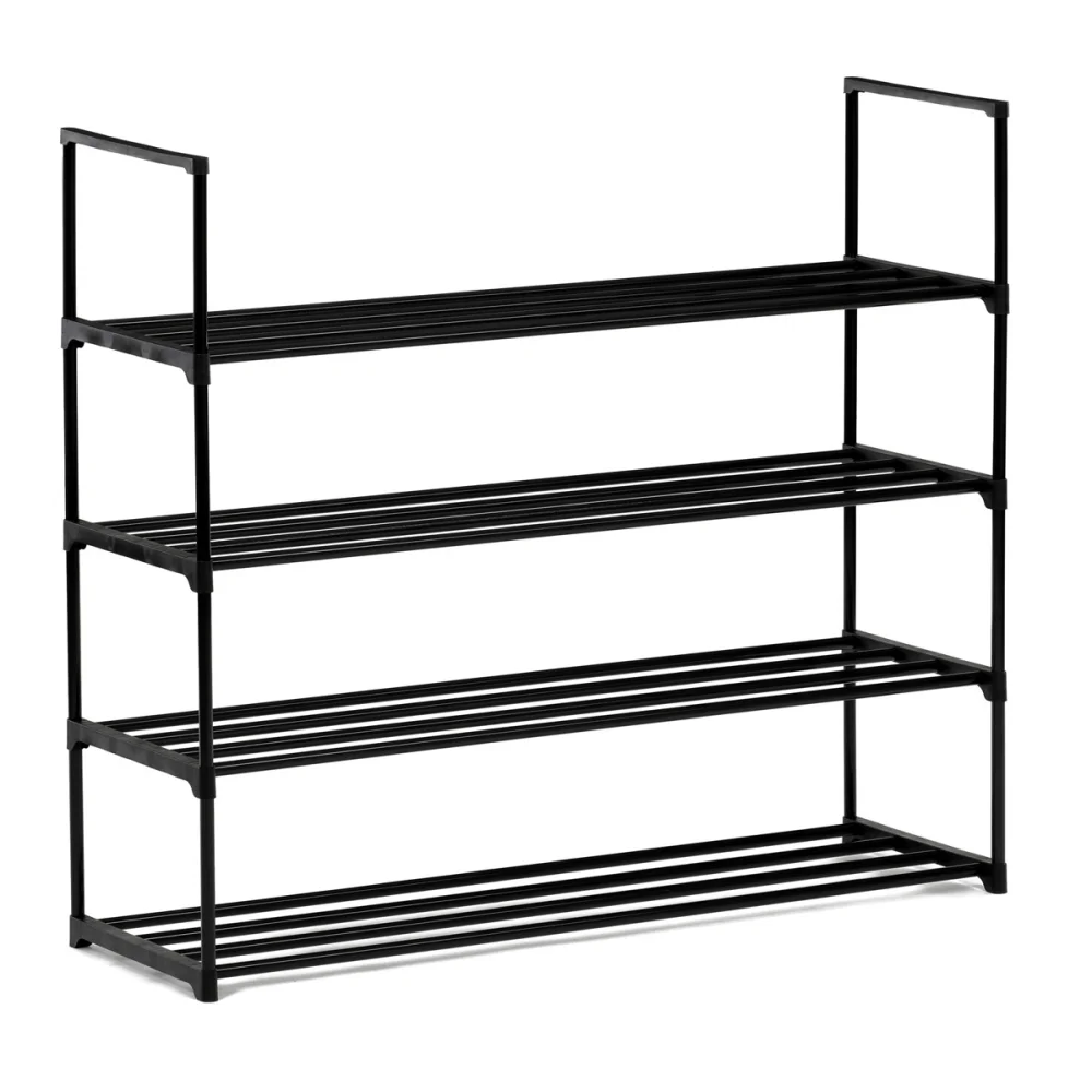 Prostorný botník nabízí praktické a stylové řešení pro uskladnění bot. Kovová konstrukce v elegantní černé barvě nese 4 police, které pojmou velké množství párů. Rozměry 91 x 29 x 81 cm poskytují dostatek místa i do větších domácností a nosnost 16 kg na polici zajišťuje pevné a bezpečné uskladnění.