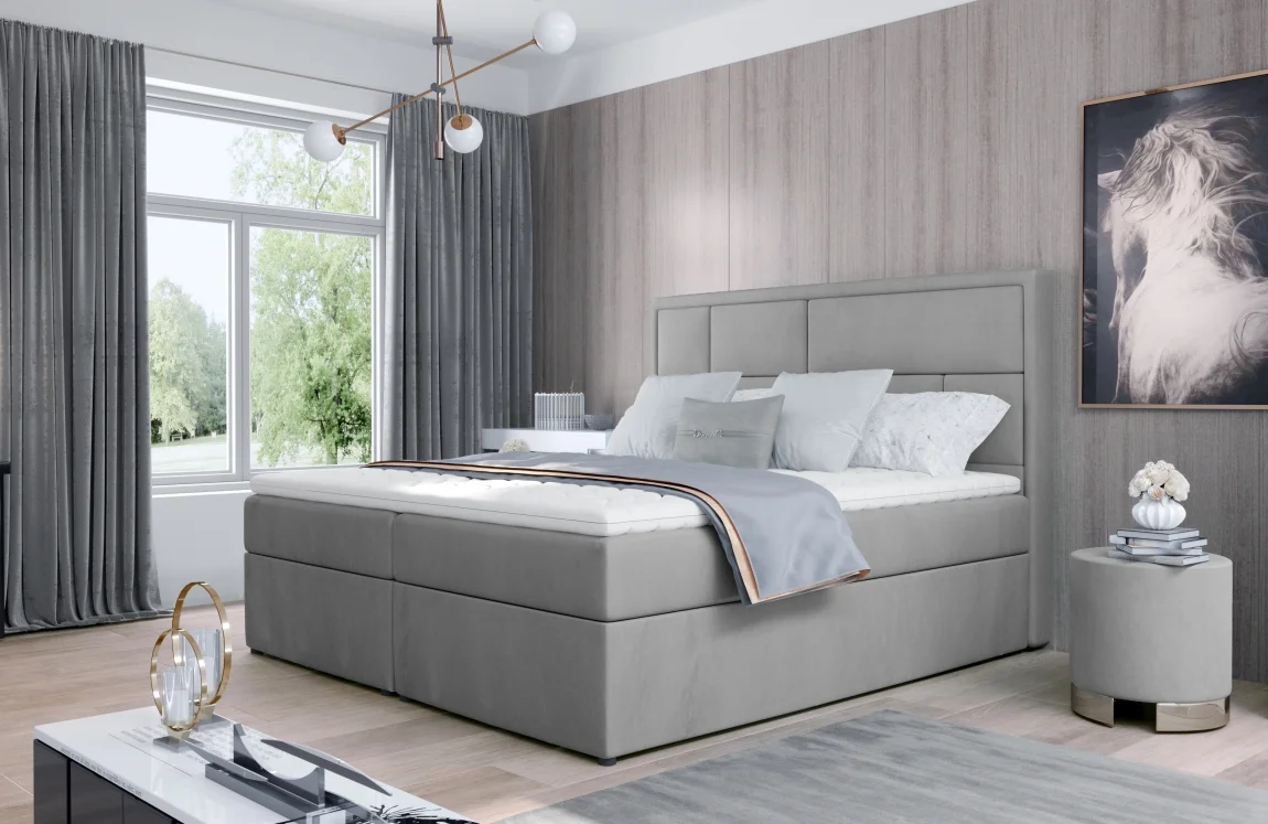 Boxspring BARBARIO 15 180x200, světle šedá látka Postele