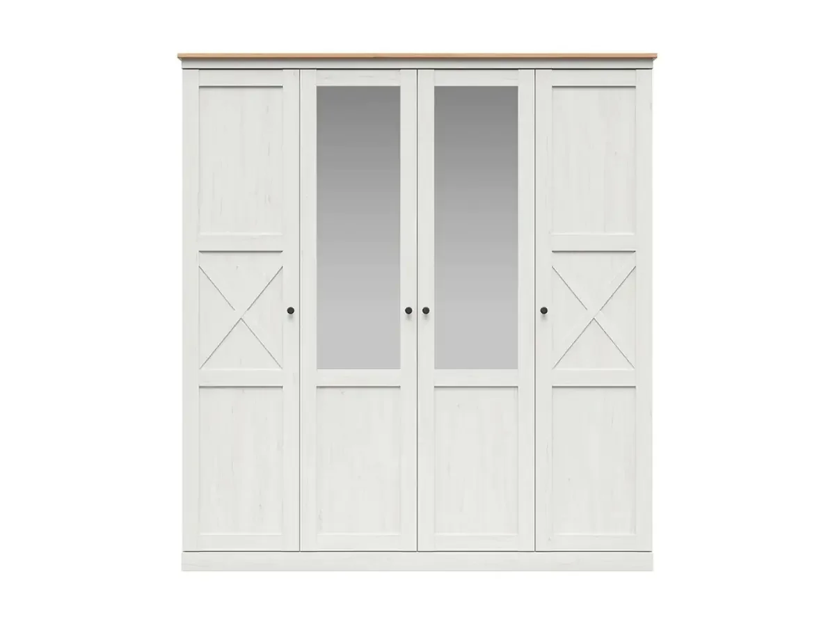 S rozměry 203 × 220 × 58 cm nabízí dostatek úložného prostoru pro celé šatníky a doplňky a díky čtyřem dvířkům zůstává interiér přehledný. Dvě z dvířek jsou osazené zrcadly, která zvětší místnost a zároveň usnadní kontrolu outfitu při oblékání. Uvnitř najdete policový systém a šatní tyče, který lze snadno přizpůsobit a případně rozšířit o dodatečné police podle vašich potřeb. Pro pohodlnou dopravu je rozložena do sedmi balíků a součástí je návod k montáži, montáž je tedy rychlá a nenáročná.