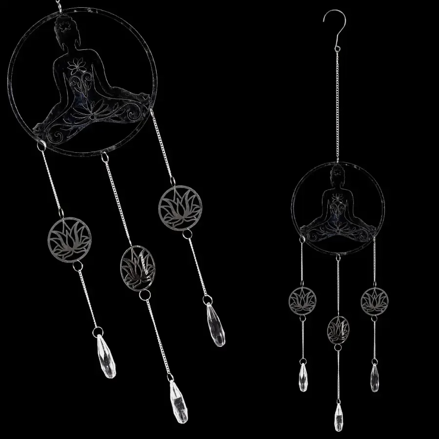 Elegantní stříbrná kovová dekorace na zavěšení s motivem Budhy a lotusového květu vnese do prostoru klid a harmonii; hodí se jak do interiéru, tak do exteriéru. Dekor je vyroben z odolného kovu a má povrchovou úpravu, která zajišťuje dlouhou životnost a jednoduché zavěšení na zeď, dveře či zahradní háček. Díky nadčasovému designu se snadno sladí s různými styly zařízení a díky kompaktním rozměrům nezabere zbytečný prostor.