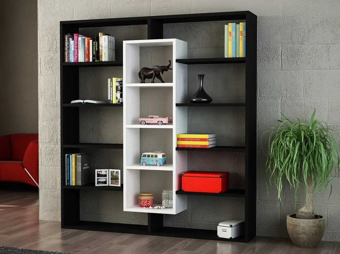 Moderní policový regál BULDAN kombinuje černou a bílou matnou úpravu pro svěží vzhled interiéru. Lamino o tloušťce 18 mm je ošetřeno PVC hranami, které zajišťují odolnost proti poškrábání. Díky promyšlenému uspořádání polic je ideální jako stěna v obývacím pokoji, dětském či studentském pokoji a zároveň poslouží jako knihovna v pracovně či kanceláři. Regál je dodáván v demontovaném stavu a k montáži postačí základní nářadí a návod; zvládne ji i úplný začátečník. Pro praktické uspořádání knih a dekorací nabízí kombinaci kompaktního designu a funkčnosti, která šetří prostor a působí vzdušně.