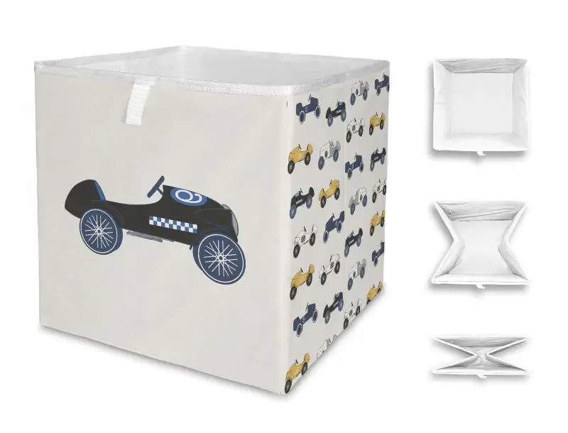 Praktická dětská úložná krabice na auta s rozměry 32 × 32 × 32 cm a objemem 32 litrů usnadní pořádek v každém dětském pokoji. Vnitřek krabice je opatřen voděodolnou vrchní vrstvou, která se dá jednoduše otřít a udržovat čistou. Krabice disponuje háčkem pro zavěšení, díky čemuž ušetříte místo a usnadníte ukládání hraček. Potisk byl vyroben v Praze a samotné šití probíhá na Vysočině. Údržba: očistěte studenou vodou, nebělit a nechte uschnout na vzduchu.