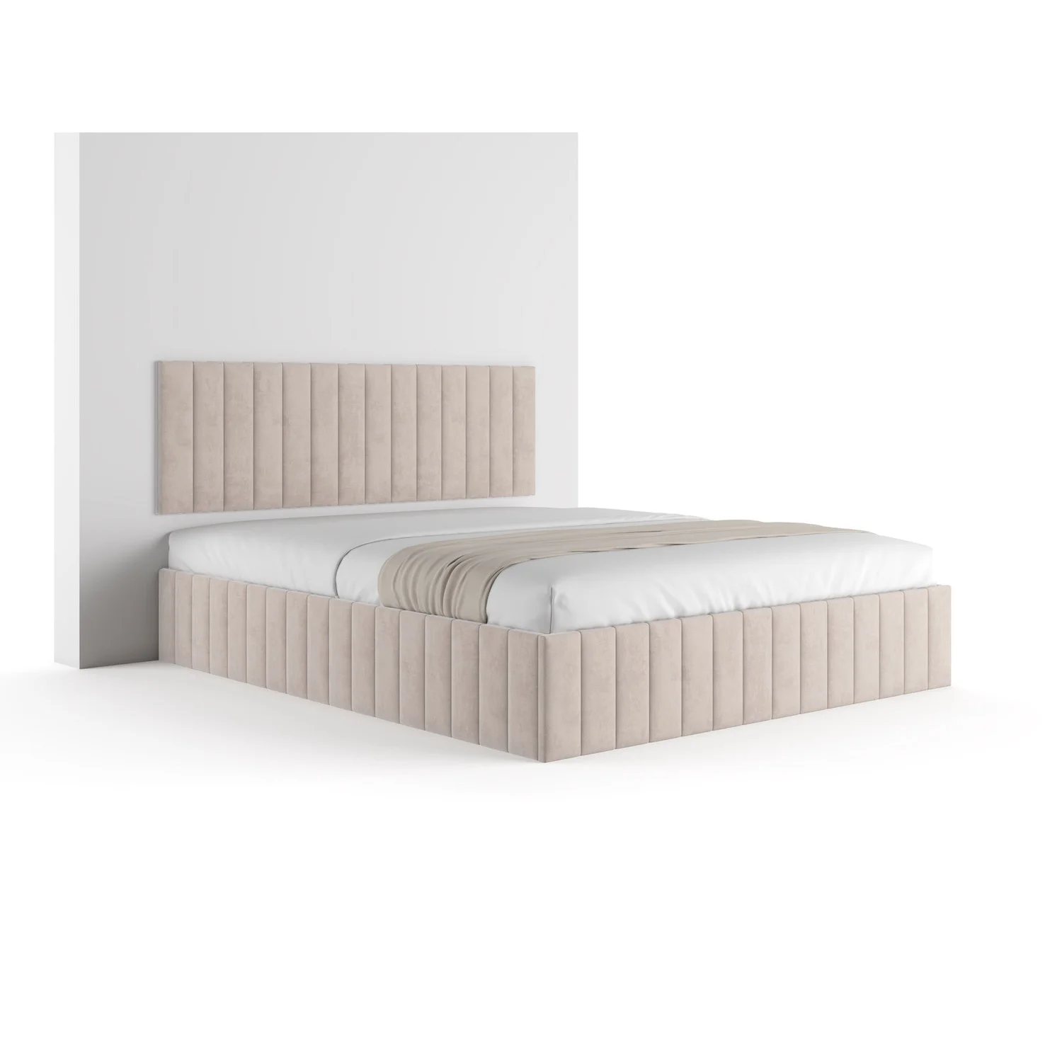 Potahy nabízíme ve variantách tkanin: Velluto pro hebký dotek a snadnou údržbu, Monolith s hydrofobní ochranou pro lepší odolnost vůči tekutinám a Kronos plyšovou tkaninu pro luxusní pocit. Péče o údržbu je jednoduchá – stačí jemný hadřík a vhodný čisticí prostředek pro čalouněný nábytek. Poznámka: vzorové panely za postelí na fotografiích nejsou součástí nabídky. Dostupnost v několika barevných provedeních umožňuje snadno sladit postel s vaším interiérem.