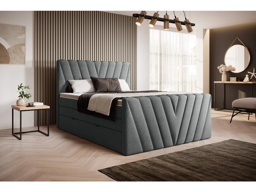 Boxspring Candice představuje pevný, stylový a pohodlný základ pro moderní i klasické interiéry, přičemž čalouněná zadní stěna umožňuje umístění postele i uprostřed místnosti. Sada matrací zajišťuje komfort na nejvyšší úrovni: spodní část s bonellovými pružinami a pěnou T25 s tvrdostí H2/3 spolupracuje se vrchní matrací s tuhostí H3; topper je oboustranný a opatřený zipem, což usnadňuje údržbu. Díky těmto prvkům je postel Candice nejen pohodlná, ale i výrazný estetický prvek ložnice. Vysoký komfort a kvalitní podpora těla jsou zajištěny i při delším spaní, a navíc se postel díky své univerzálnosti hodí k různým stylům zařízení.