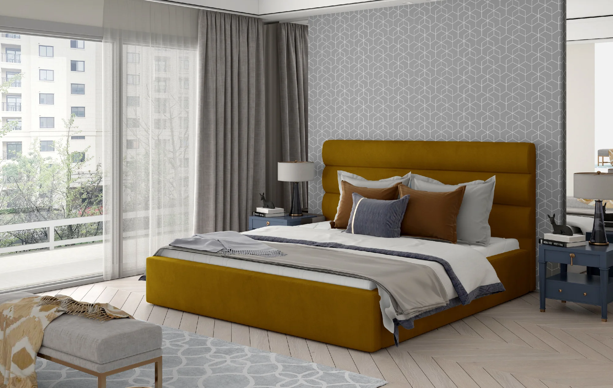 Postel může být dodána buď s dřevěným roštem, nebo s kovovým rámem; v druhé variantě na vás čeká úložný prostor a plynový zvedací mechanismus pro pohodlné každodenní používání. Široká paleta barevných provedení umožňuje sladit nábytek se stylem vašeho interiéru. Vysoké čelo s dekorativním prošíváním dodává posteli elegantní akcent. Caramel spojuje maximální pohodlí s atraktivním designem a skvěle se hodí do klasických i moderních ložnic. Díky pečlivému zpracování je postel pevná, odolná a údržba je minimální.