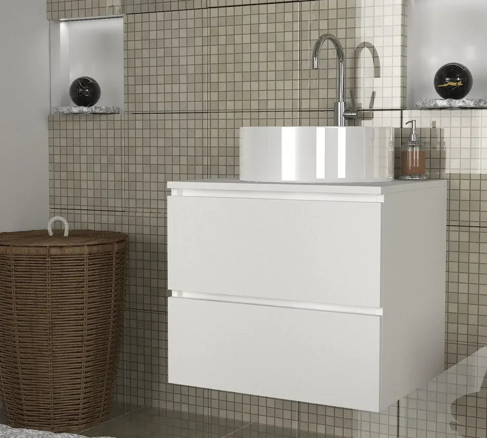 Casarredo DONGOLA je závěsná skříňka pod umyvadlo s dvěma výklopnými dvířky. Je vyrobena z kvalitního lamina tloušťky 18 mm, které je odolné proti poškrábání a má moderní matný bílý odstín.