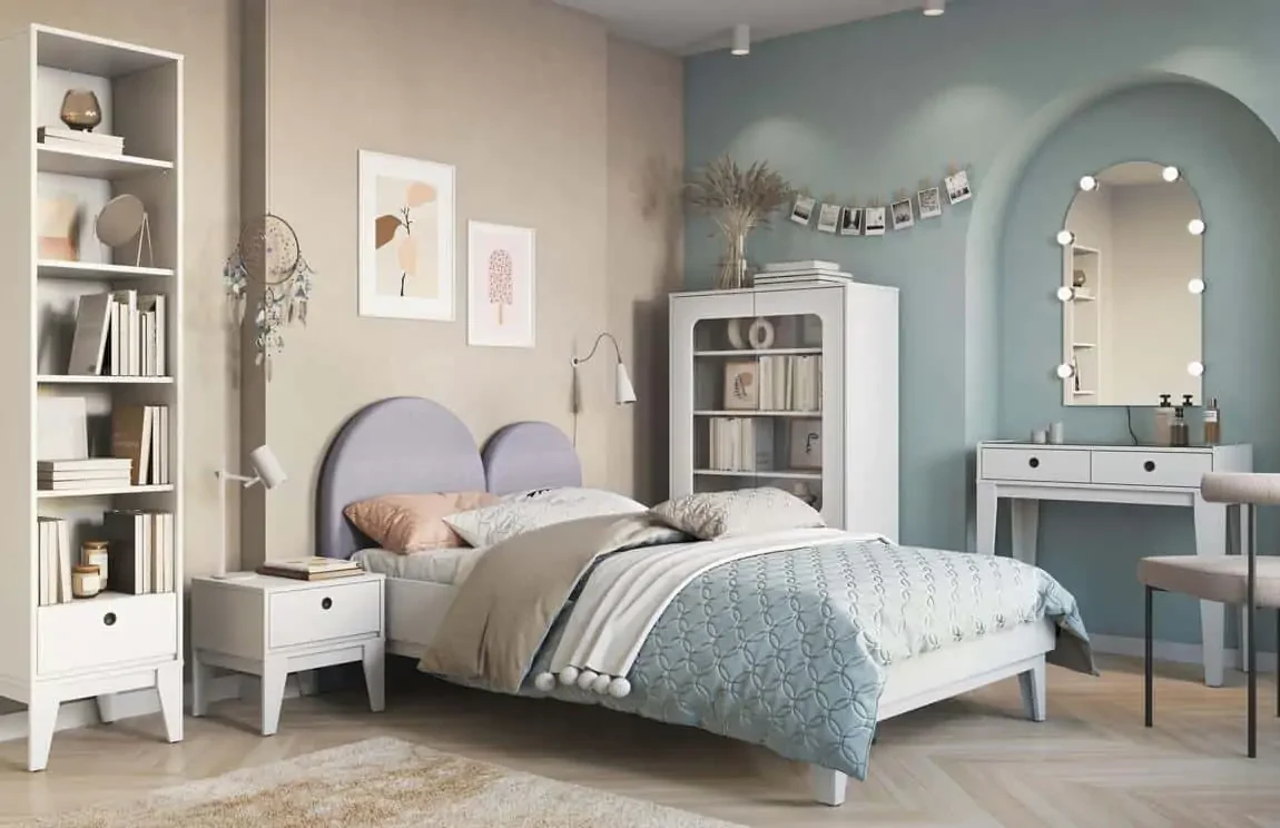 Casarredo FLERS Set 1 v bílé matné úpravě je ucelená dětská sestava vyrobená z LTD desky s ABS hranami, které zajišťují pevnost a bezpečí. Postel o rozměrech 126 x 102 x 208 cm má čelo čalouněné šedým polstrováním a v ceně je rošt; matrace 120 x 200 cm je nutné dokoupit. Dále v sestavě najdete noční stolek 46 x 45 x 40 cm, vitrínu 92 x 147 x 40 cm, zrcadlo bez LED 55 x 96 x 2 cm, toaletní stolek 92 x 84 x 40 cm a regál 46 x 202 x 40 cm. K zrcadlu lze dokoupit LED osvětlení. Sestava se dodává v demontovaném stavu. Pro dokonale sladěný pokoj doporučujeme doplnit dětský prostor některým z dětských kusových koberců.