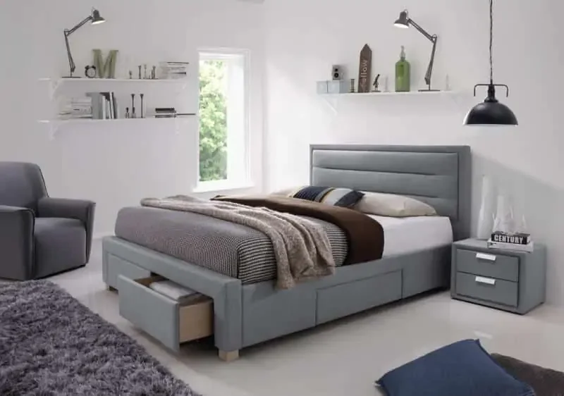 Konstrukce je potažena šedou látkou a součástí je lamelový rošt v plastových pouzdrech. Matraci je nutné objednat zvlášť, možnosti jsou 160 × 200 cm nebo dva kusy 80 × 200 cm. Nožky jsou vyrobené ze dřeva. Dodáváme v demontovaném stavu. Úložný prostor ve dvou zásuvkách ocení každý, kdo potřebuje ušetřit místo a mít postel pořádně uklizenou. Snadná údržba a nadčasová barva šedá zajistí, že postel bude ladit s řadou stylů ložnic.