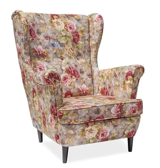 Představujeme čalouněné křeslo LORD WM25 od Casarredo, které spojuje vysoký komfort s nadčasovým designem. Nohy křesla jsou vyrobené ze dřeva v odstínu wenge a sedací část s opěradlem je potažena látkou s jemným květinovým vzorem.