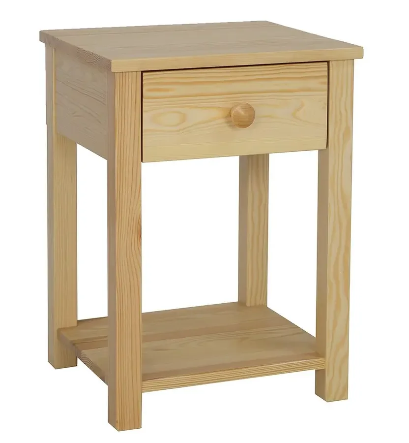 Noční stolek Zamora 123 je zpracován z prvotřídního dřeva borovice, které zajišťuje dlouhou životnost a příjemný vzhled. Jeho jednoduchý, čistý tvar nabízí jednu zásuvku a praktickou polici pro ukládání. Přírodní materiál dodává interiéru teplý dojem a jemnou vůni dřeva. Díky možnosti kombinací s dalšími díly od stejného výrobce lze dosáhnout harmonického a stylového vzhledu celé místnosti. Dodáváme v demontovaném stavu, což usnadňuje přepravu a uskladnění; po jednoduché montáži se stane praktickým a estetickým doplňkem ložnice.