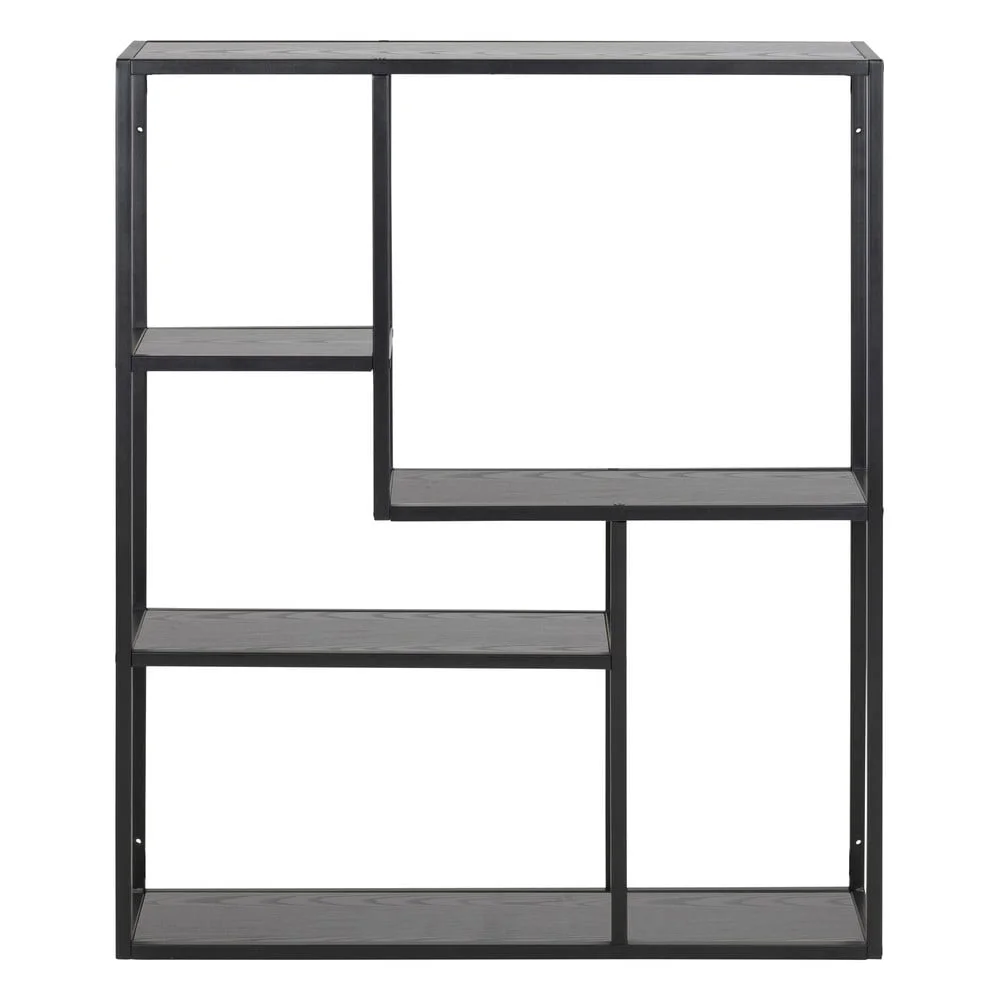 Moderní nástěnná knihovna z kolekce Seaford kombinuje elegantní černou kovovou konstrukci s přírodním dekorem jasanu, díky čemuž působí nejen stylově, ale i prakticky. Její rozměry 75x91 cm umožňují efektivní využití prostoru a ideálně se hodí do industriálně laděných interiérů.