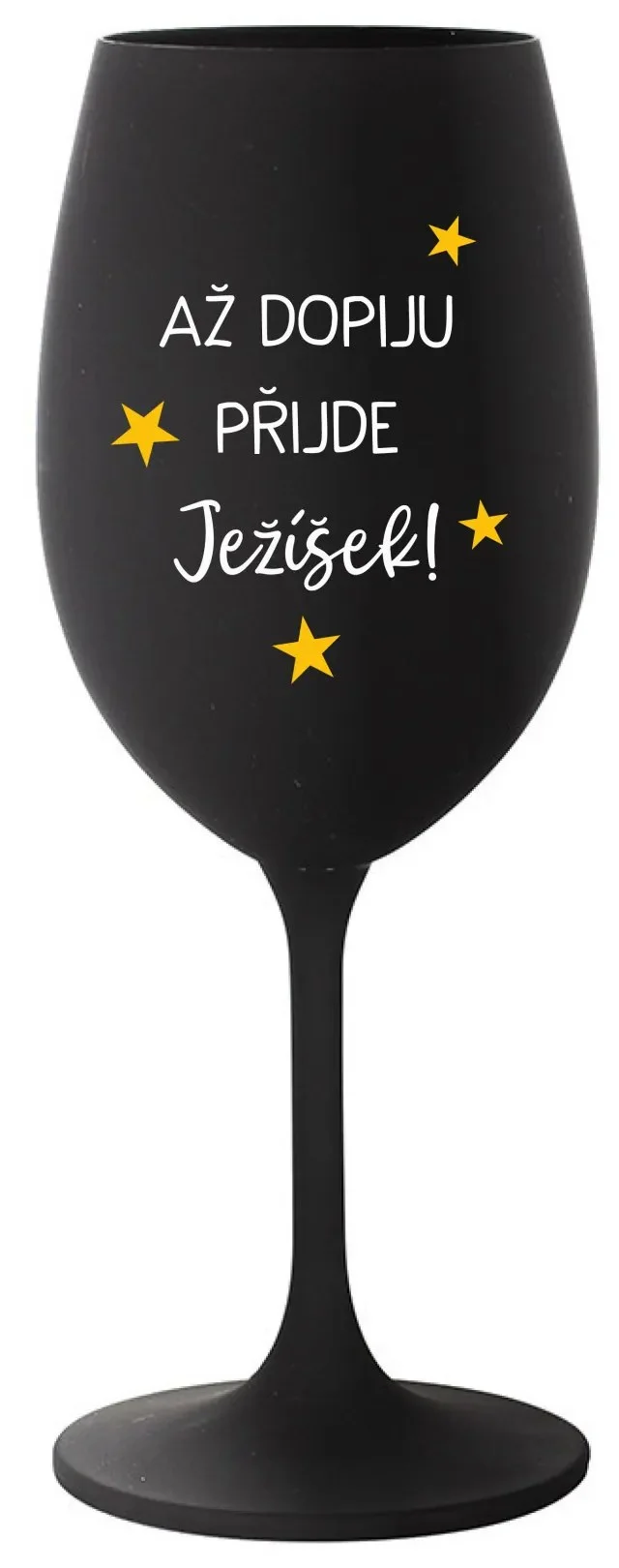 Elegantní černá vinná sklenice s originálním motivem AŽ DOPIJU, PŘIJDE JEŽÍŠEK je ideální volbou pro milovníky vína, kteří si chtějí zpříjemnit nejen slavnostní příležitosti, ale i běžné večery.