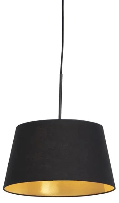 Černé a zlaté závěsné svítidlo s bavlněným stínítkem 32 cm Lustry