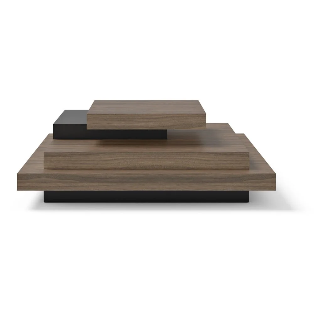 Moderní konferenční stolek v elegantním dekoru ořechu kombinuje tmavé a přírodní odstíny, které dodají vašemu interiéru sofistikovaný vzhled. Rozměry 110x110 cm zajišťují dostatek prostoru pro vaše dekorace, knihy či občerstvení.