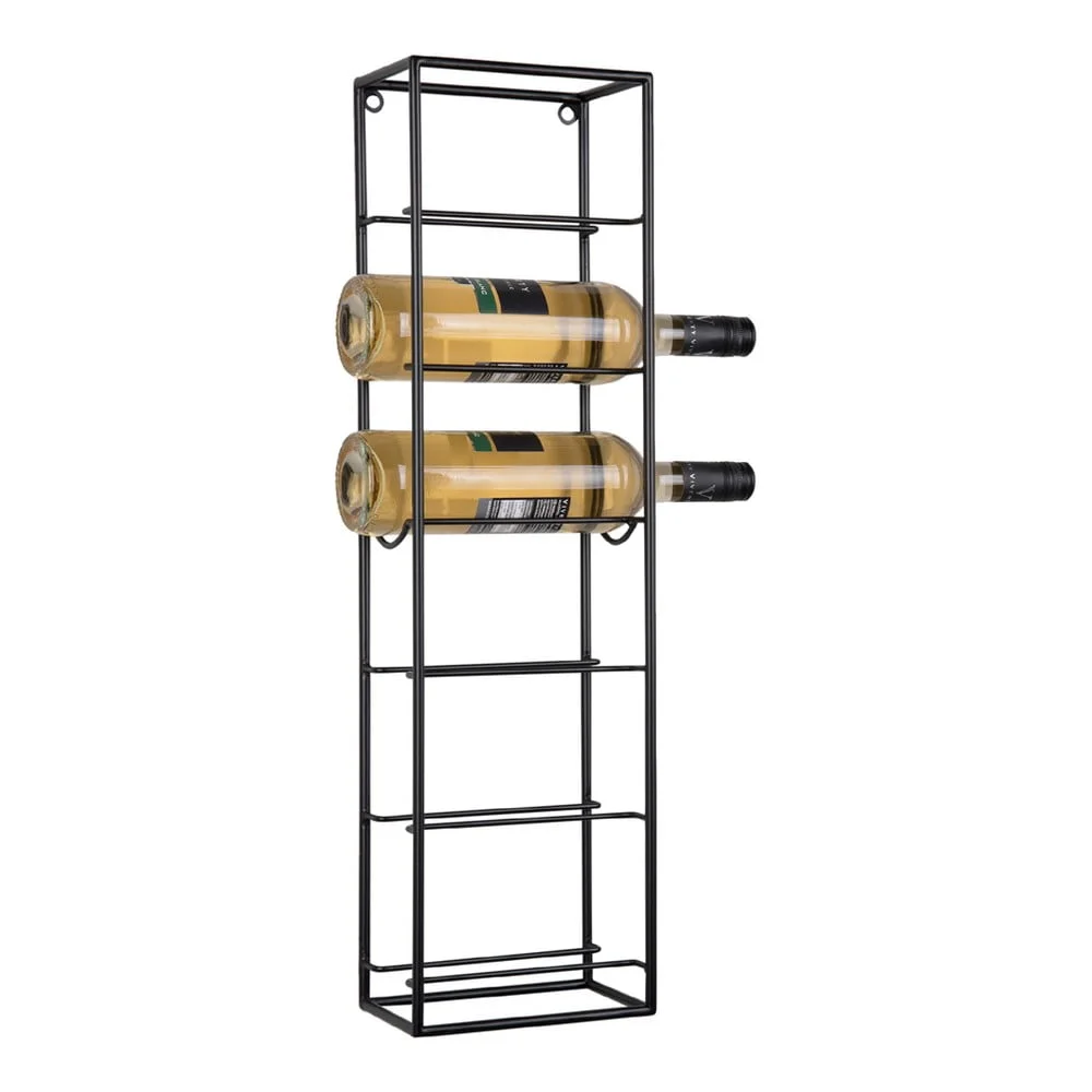 Černý kovový nástěnný stojan na víno pro 6 lahví Regály na víno