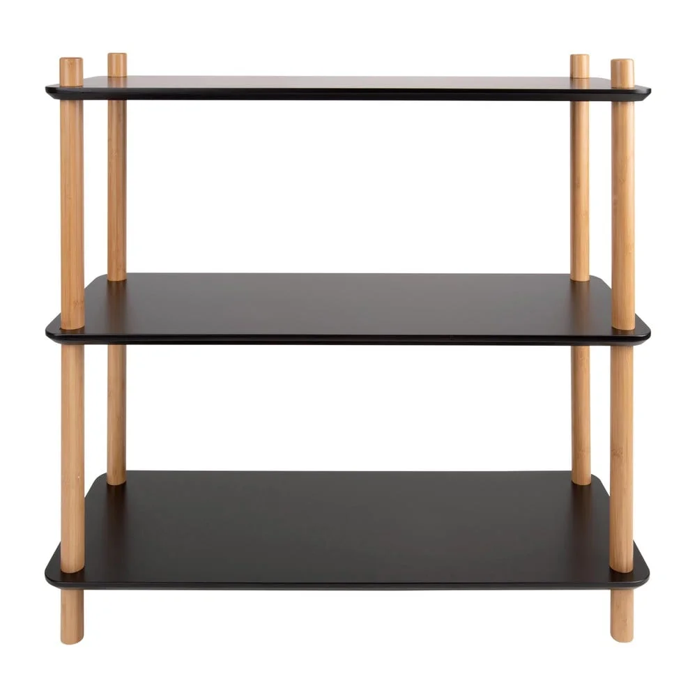 Obohaťte svůj interiér elegantním černým regálem od značky Leitmotiv, který kombinuje moderní vzhled s přírodním akcentem díky bambusovým nohám. Tento stylový kousek nejenže nabízí dostatek úložného prostoru, ale také přidá do vašeho domova nádech nadčasové estetiky.
