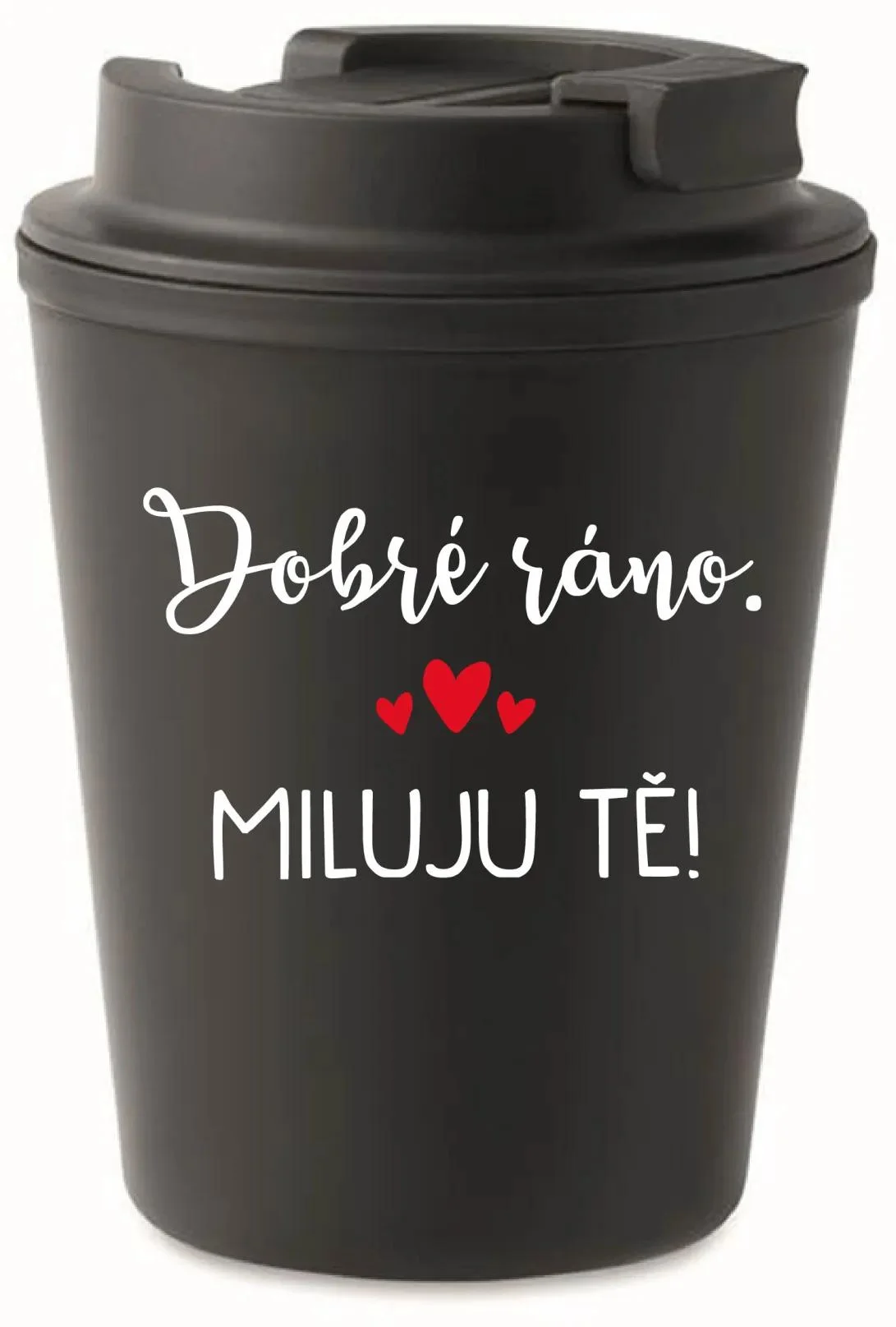 Parametry produktu Černý termohrnek 300 ml s nápisem Dobrý ráno, miluju tě!