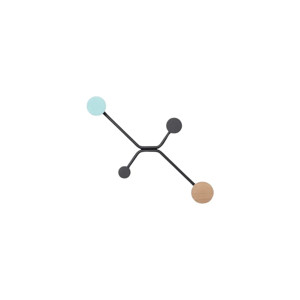 Gazzda Hook je elegantní nástěnný věšák, který oživí každý zapomenutý kout vašeho domova. Jeho design kombinuje moderní černou barvu s osvěžujícím mentolovým detailem, čímž dodává prostoru originální vzhled.