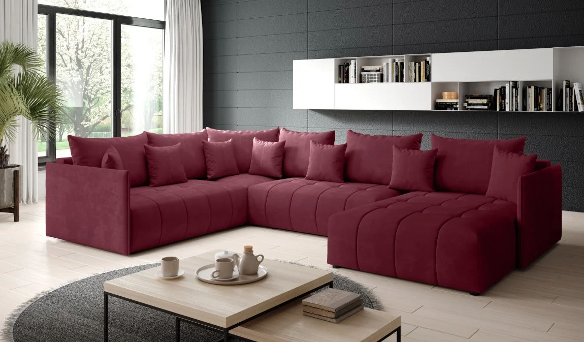 Univerzální rohová sedačka PURDY BIS se dá jednoduše upravit na pravý i levý roh, čímž skvěle padne do různých prostor. Potah v červené barvě (monolith 59) je odolný a snadno udržovatelný.