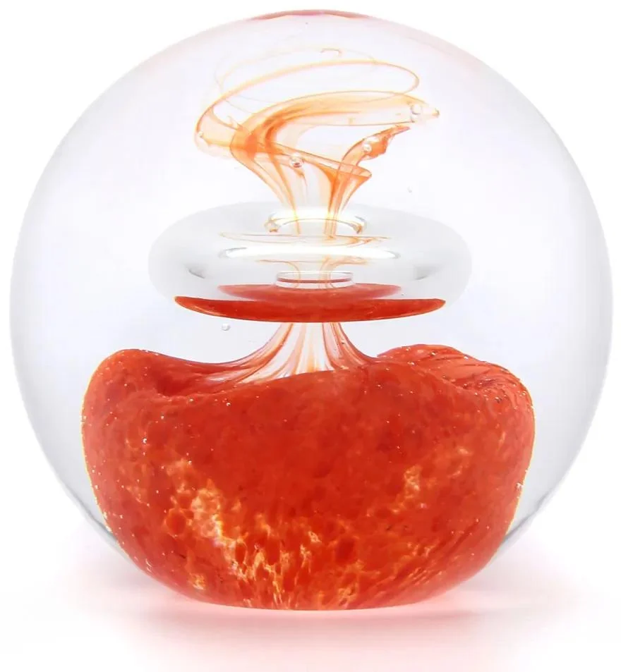 Toto ručně tvarované kulaté skleněné těžítko s vnitřním dekorem je jedinečným kouskem českého sklářského umění. Vyrobeno z kvalitního bezolovnatého křišťálu v České republice, každý kus je originálem s vlastním charakterem.