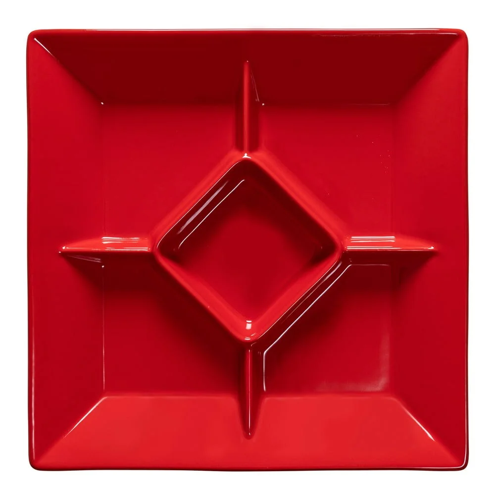 Červený kameninový talíř na pochutiny 33x33 cm Talíře