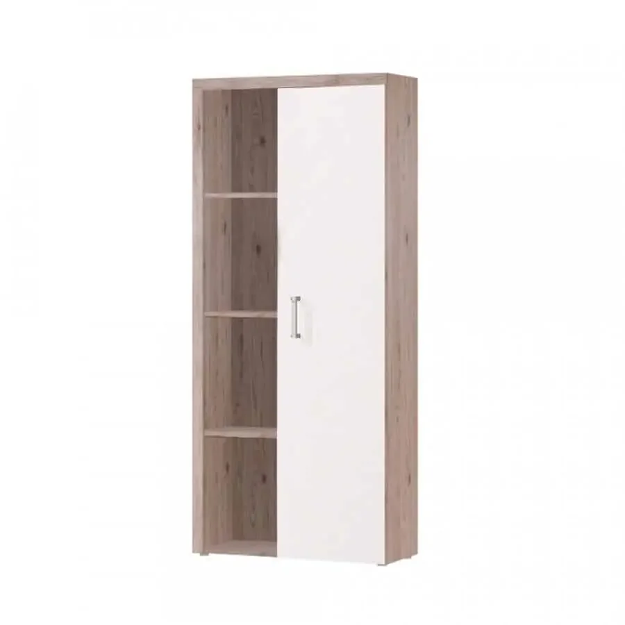 Policová skříň z laminované dřevotřísky v kombinaci barev san marino a cream poskytuje pevné a stylové zpracování. V pravé části najdete uzavřená dvířka, zatímco vlevo je otevřený regálový prostor pro rychlou orientaci a přehlednost. Tloušťka materiálu činí 16 mm, díky čemuž je skříň velmi stabilní a odolná. Dodává se v demontovaném stavu, takže montáž je jednoduchá a rychlá. Ideální volba pro obývací pokoj, pracovnu či ložnici, kde oceníte jak uzavřený úložný prostor, tak flexibilní regál.
