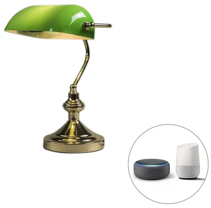 Chytrá mosazná stolní lampa se zeleným sklem Lampičky