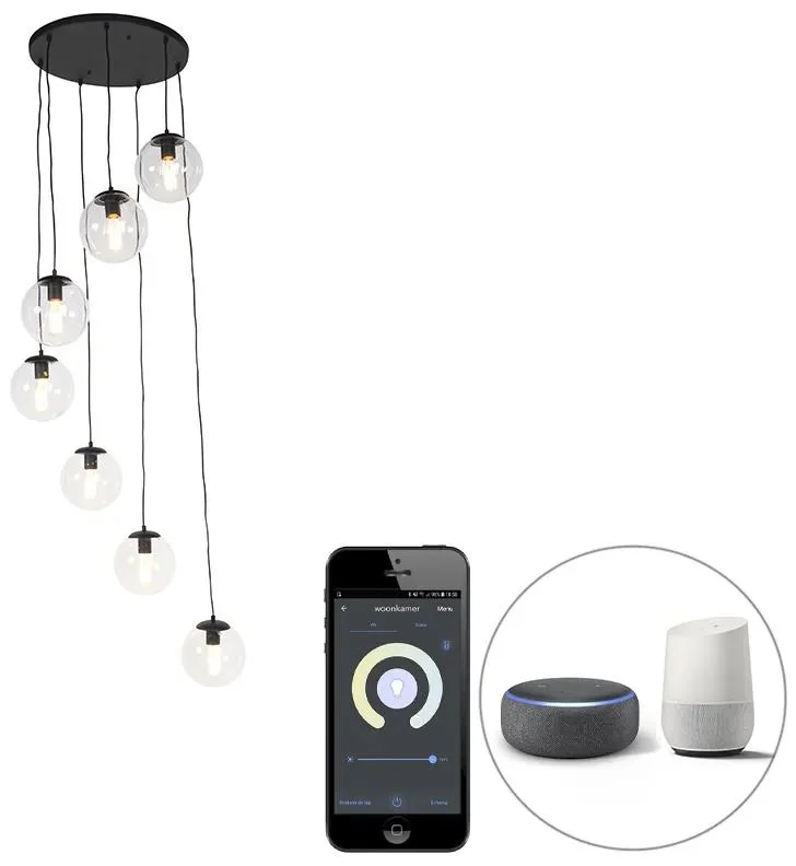 Moderní závěsné osvětlení Pallon v elegantní černé barvě je ideální volbou pro stylový interiér s nádechem art deco. Vyrobeno ze transparentního skla, nabízí sedm osvětlených bodů, které zajistí dostatek světla v každé místnosti.