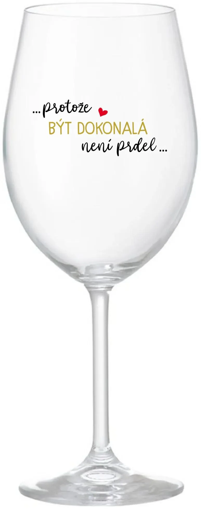 Elegantní sklenice na víno s originálním nápisem 'Protože být dokonalá není prdel' je perfektním doplňkem pro každého, kdo si rád vychutná kvalitní víno s kapkou humoru. Tato 350 ml sklenice nejen ozdobí váš jídelníček, ale také potěší jako osobní dárek pro milovníky vína.