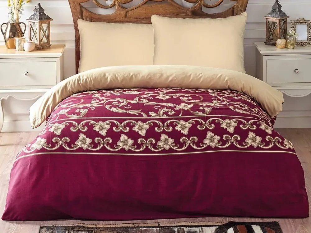 Luxusní bavlněné saténové povlečení Taylor v elegantní rubínové barvě s jemným zlatavým dekorem přináší do vaší ložnice sofistikovaný vzhled a příjemný pocit na dotek. Díky použití hustější tkaniny je toto povlečení nejen pevnější a odolnější, ale zároveň si zachovává prodyšnost a schopnost efektivně odvádět vlhkost, což přispívá k vašemu pohodlí během noci. Vhodné rozměry umožňují výběr z klasických, prodloužených či francouzských variant, přičemž zapínání na zip zajišťuje snadné a bezpečné použití. Výrobek je vyrobený z kvalitní turecké bavlny, která je známá svou jemností a savostí, a je certifikována jako nezávadná podle mezinárodního institutu Oeko-Tex. Tento produkt je ideální volbou pro ty, kteří hledají spojení elegance, kvality a přírodní příjemnosti v ložním prádle, které vydrží dlouhou dobu a zároveň nabízí maximální komfort.