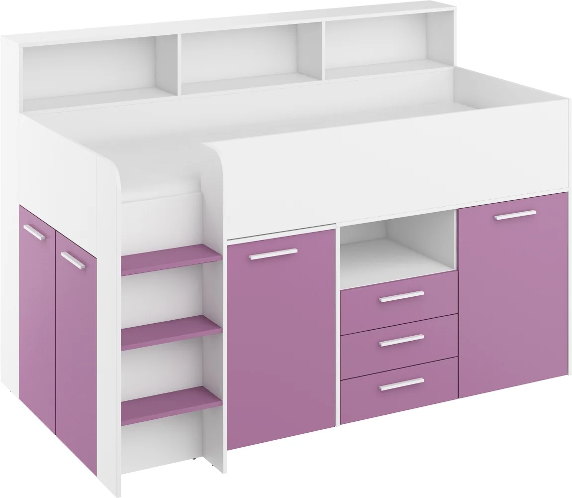 DAGOBERT: multifunkční patrová postel, levá, bílá/levandulová – 5 let záruka Dětský pokoj