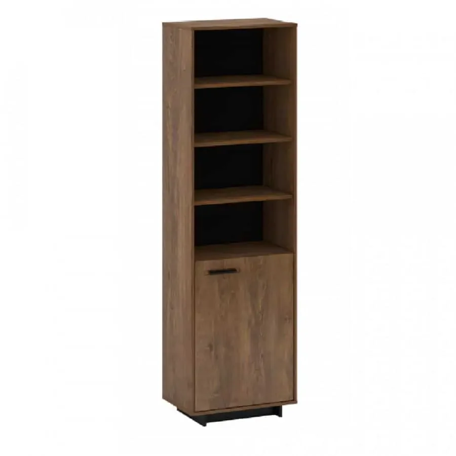DELIS R2 vitrína/regál nabízí dostatek úložného prostoru pro vaše věci i dekorace. Je vyrobená z laminované dřevotřísky a doplňují ji dvířka z MDF. Za dvířky, které se otevírají kovovými úchytkami směrem doprava, je umístěna jedna police. K tomu patří i otevřený regál a praktická skříňka pro uzavřené uložiště. Elegantní kombinace dub Bolzano s černými detaily na úchytech a na nosném podstavci dodává nábytku moderní vzhled. Vhodné je do ložnice, obývacího pokoje, pracovny i studentského pokoje. Výška spodního prostoru od podlahy činí 5 cm, tloušťka materiálu je 16 mm. Dodáváno v demontu.